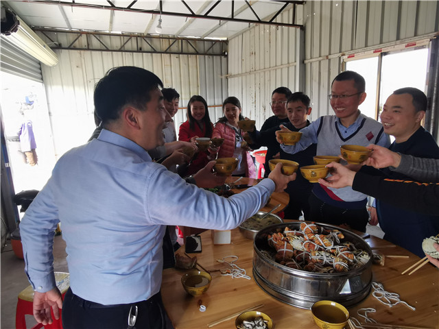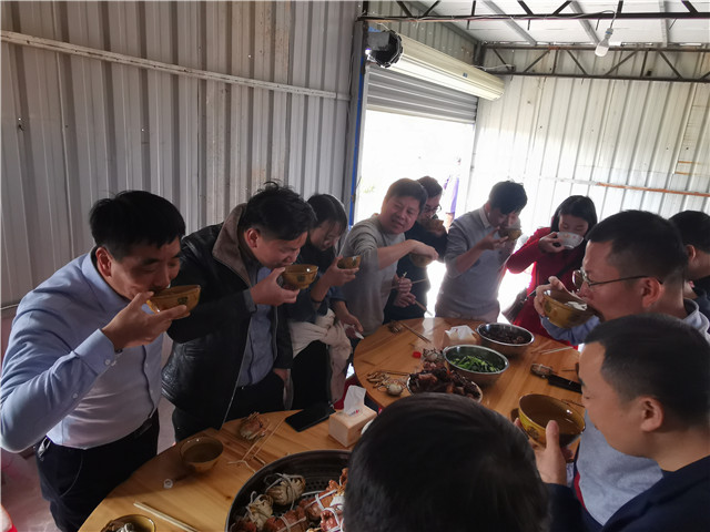 中午12點(diǎn)30分,大家一起享用美味的午餐。綠色的果蔬,配上濃郁香醇的米酒,歡樂的氣息充滿了整個房間。