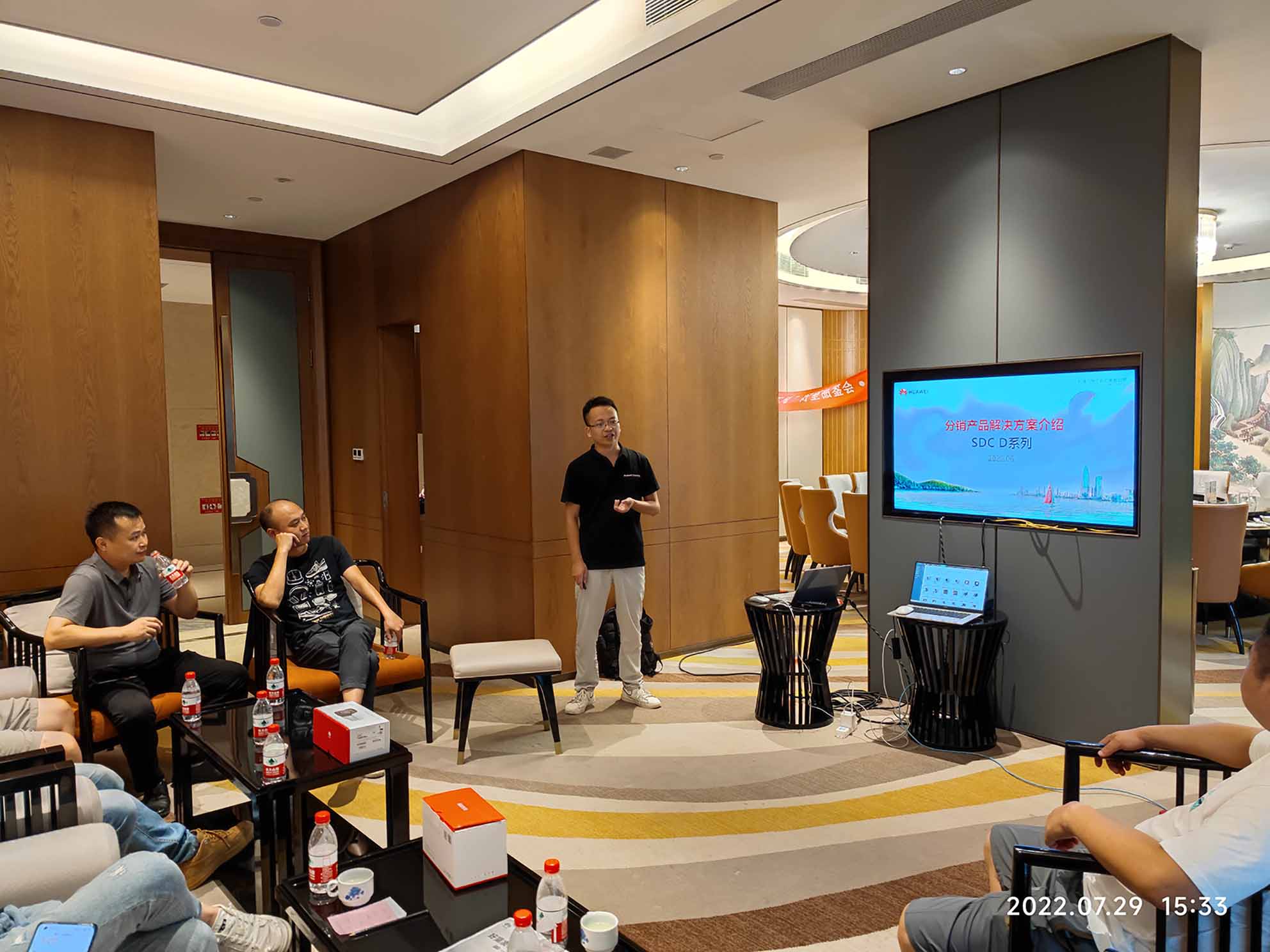 圖為南昌漢天銷售經(jīng)理羅亮為本次品鑒會演講。