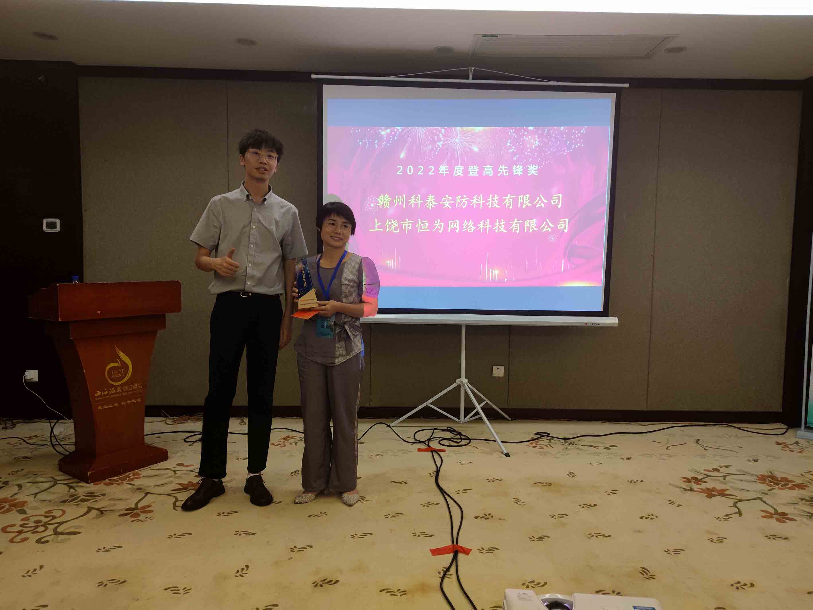 會上、上饒市恒為網(wǎng)絡(luò)科技有限公司和贛州科泰安防科技有限公司獲“2022年度登高先鋒獎”