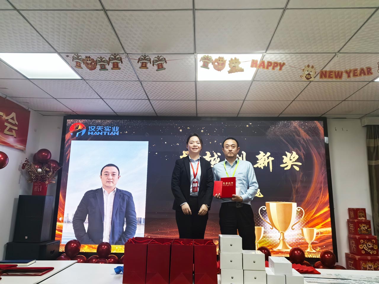 辭別玉兔迎金龍,新年氣象樂融融,2024年2月3日,南昌市漢天實(shí)業(yè)有限公司迎來了以“同心同行、共創(chuàng)未來”為主題的2023年度總結(jié)暨表彰大會。砥礪奮斗辭舊歲,攜手同心譜新篇,2023年即將落下,2024年開始演奏最新的華章。漢天實(shí)業(yè)的員工們相聚一堂,在主持人的熱情祝福中,拉開了年終總結(jié)大會的序幕。