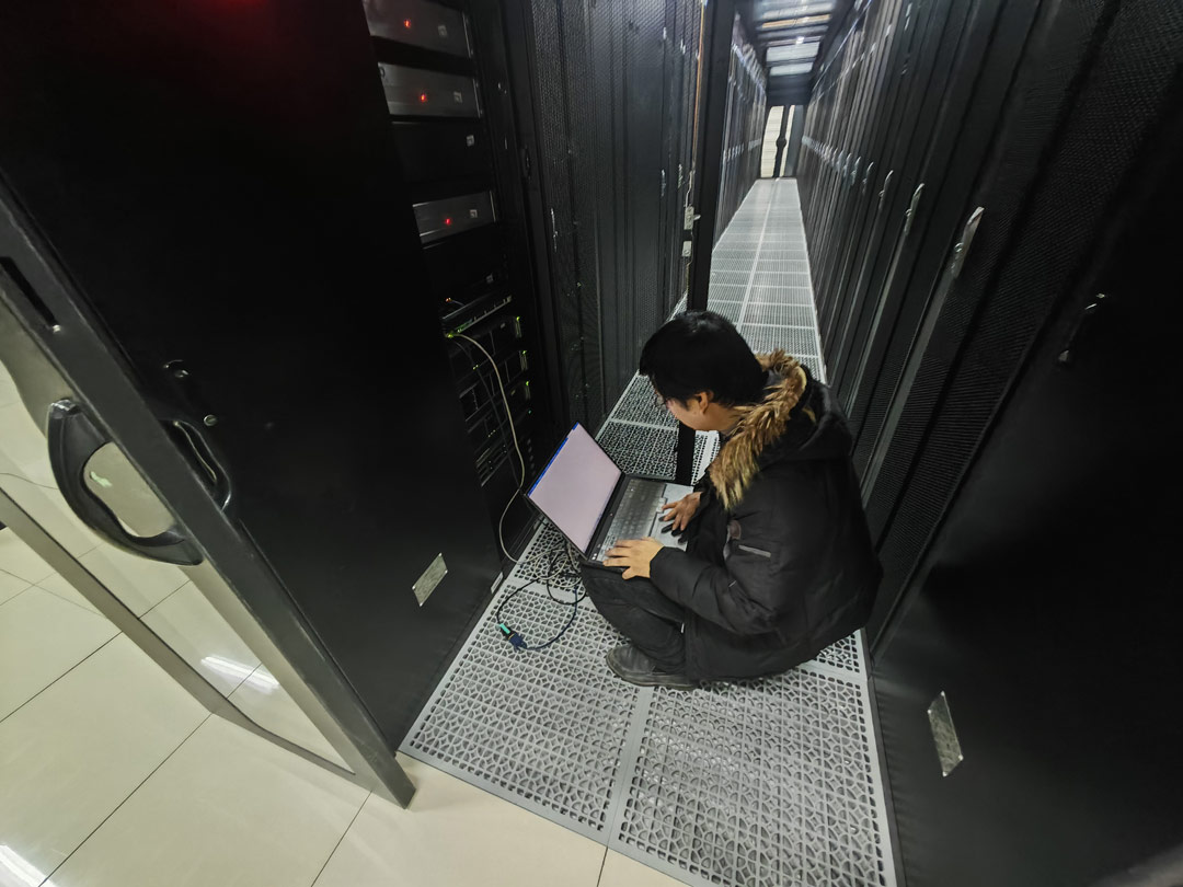 技術(shù)人員在機(jī)房進(jìn)行設(shè)備檢測